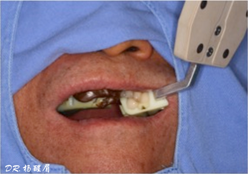 ®按照術前方案進行備洞及植體植入,醫(yī)生可以通過屏幕軟件引導對手術中植入點、角度、深度實時追蹤
