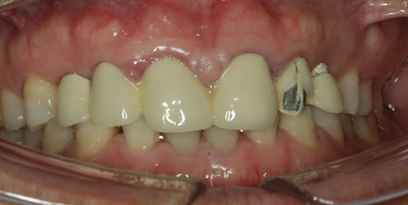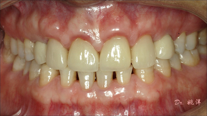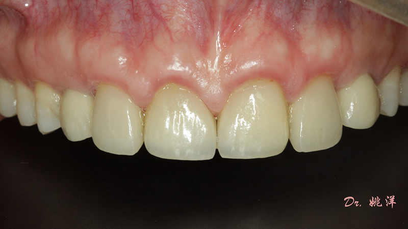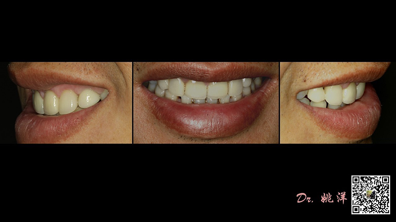 從最終修復(fù)效果可以看出:23,24間隙不足修復(fù)兩顆,修復(fù)為1顆牙。因為經(jīng)過數(shù)字化設(shè)計和精確導(dǎo)航植入,修復(fù)體齦緣協(xié)調(diào)自然
