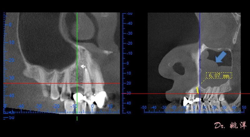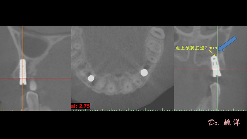 從術(shù)后CBCT顯示可以看出,手術(shù)操作中完美地避開上頜竇底,并兼顧了正確的種植方向和修復(fù)間隙