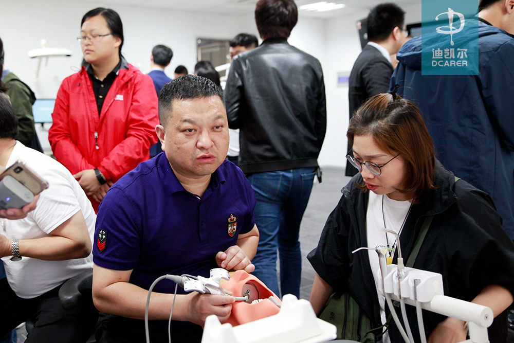 迪凱爾易植美項(xiàng)目組精心準(zhǔn)備了前牙單顆模型,后牙單顆模型,后牙多顆模型,無(wú)牙頜手術(shù)模型等,還原多種適應(yīng)癥應(yīng)用場(chǎng)景,為來(lái)賓展示了數(shù)字化導(dǎo)航系統(tǒng)強(qiáng)大功能;來(lái)賓還體驗(yàn)了迪凱爾另一款教學(xué)產(chǎn)品——口腔技能訓(xùn)練及實(shí)時(shí)評(píng)估系統(tǒng)的口腔修復(fù)學(xué)及牙齒種植教學(xué)課程,體驗(yàn)過(guò)程中,迪凱爾易植美專業(yè)團(tuán)隊(duì)針對(duì)來(lái)賓的各種問(wèn)題進(jìn)行了詳細(xì)的解答。