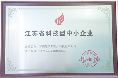 蘇州迪凱爾醫(yī)療科技有限公司(以下簡稱迪凱爾)在黨和政府的關(guān)心和支持下,經(jīng)過公司全體人員的艱辛創(chuàng)造和努力奮斗,在2021年2月被評為“江蘇省民營科技企業(yè)”。
